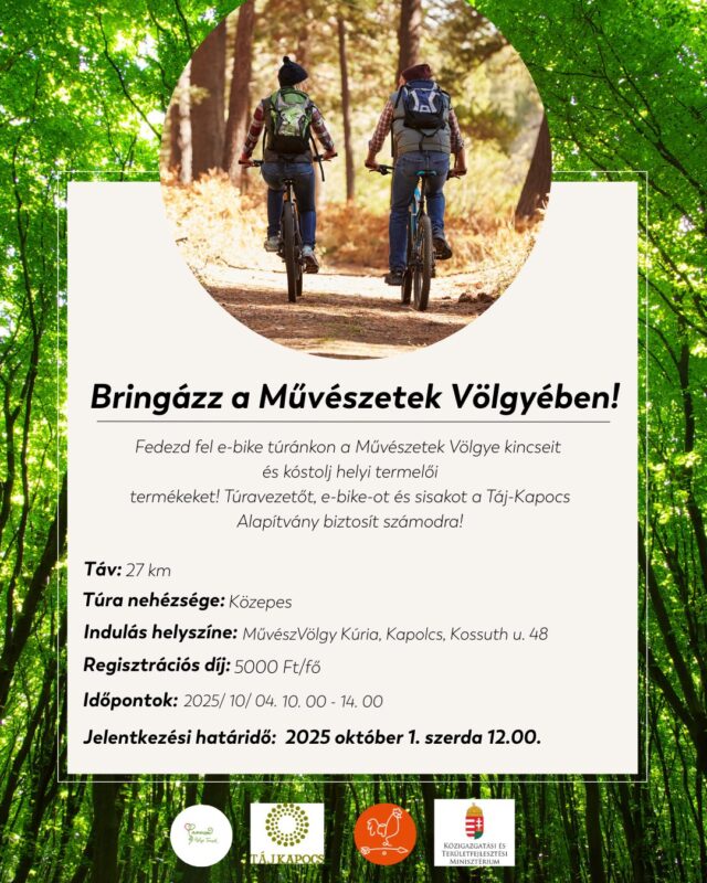 termékeket! Túravezetőt, e-bike-ot és sisakot a Táj-Kapocs Alapítvány biztosít