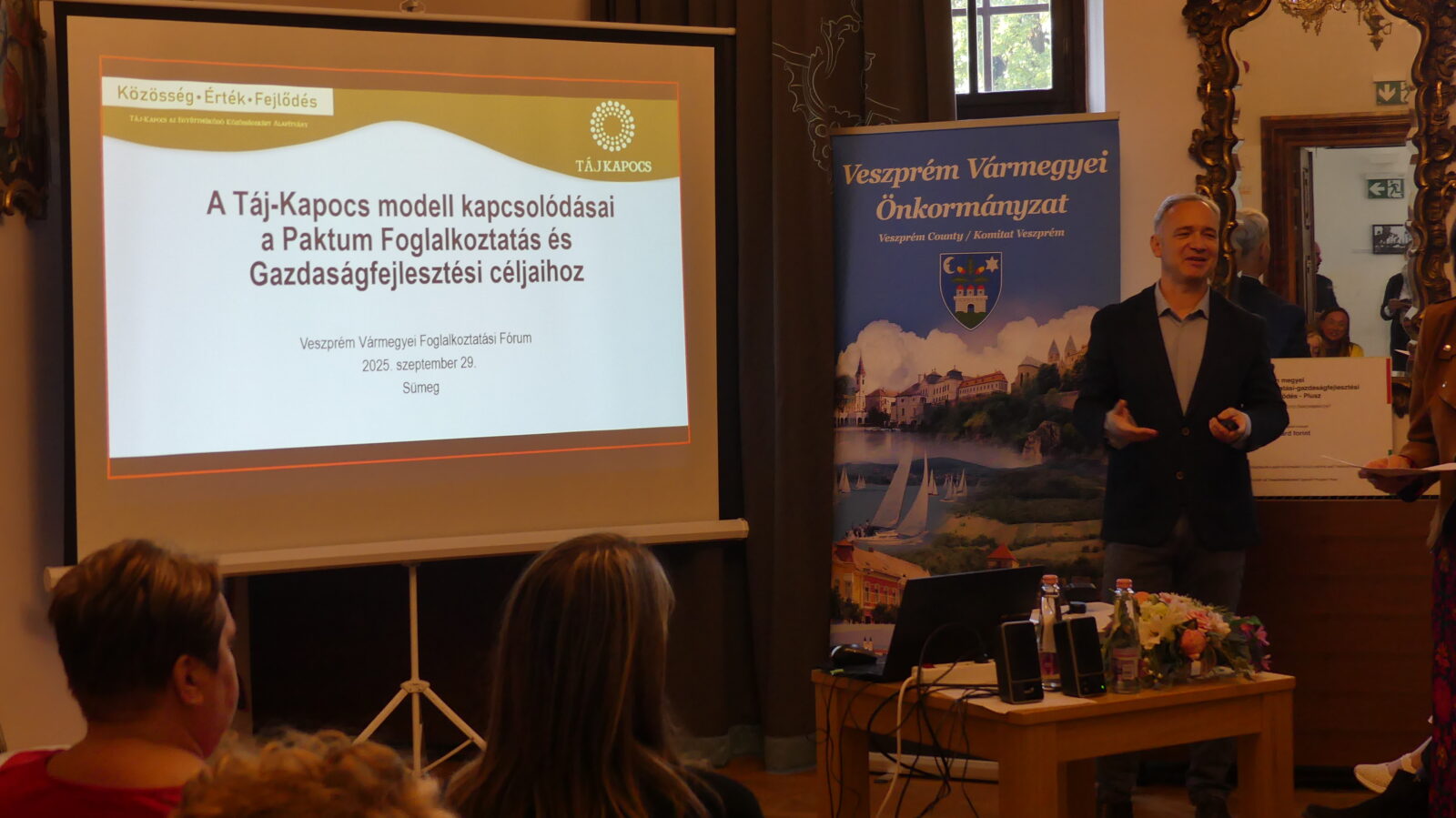 Az elmúlt hónapokban már 858 fő vett részt a kezdeményezésben: ők támogatott munkahelyen helyezkedtek el, új szakmát tanultak, vagy önfoglalkoztatóvá váltak. A program különösen fontos Veszprém, Zala és Vas vármegyék szempontjából, hiszen ezen térségek határterületein – az úgynevezett belső perifériákon – fokozottan szükséges a munkaerőpiaci beavatkozás és gazdaságfejlesztés. A konferencián a Táj-Kapocs Alapítvány is képviseltette magát. Breznovits István, az alapítvány munkatársa a helyi gazdaságfejlesztés és a vidékfejlesztés összekapcsolódásának jelentőségéről beszélt: „A helyi termékek előállítása kulcsszerepet játszik a vidék megmaradásában, a foglalkoztatásban és az élelmiszer-előállításban. Ezek a folyamatok egymással szoros szinergiában működnek – ezért is fontos, hogy a gazdaságfejlesztésre tágabb értelemben, együttműködésekben gondoljunk.”